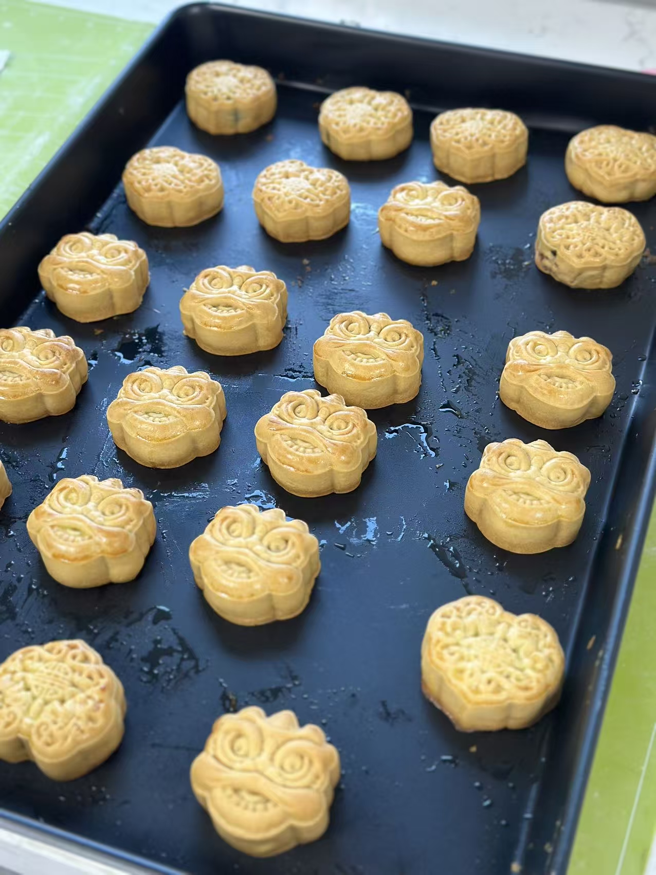 活動(dòng)現(xiàn)場布置得溫馨雅致,面團(tuán)、餡料、模具等材料早已備好,各處充滿了濃厚的節(jié)日氣息。在面點(diǎn)師傅的指導(dǎo)下,大家興致勃勃地投入到月餅制作中,揉搓面團(tuán)、包入餡料、放入模具……同事們互相交流技巧,分享心得,一個(gè)個(gè)飽滿可愛的月餅在手中成型。